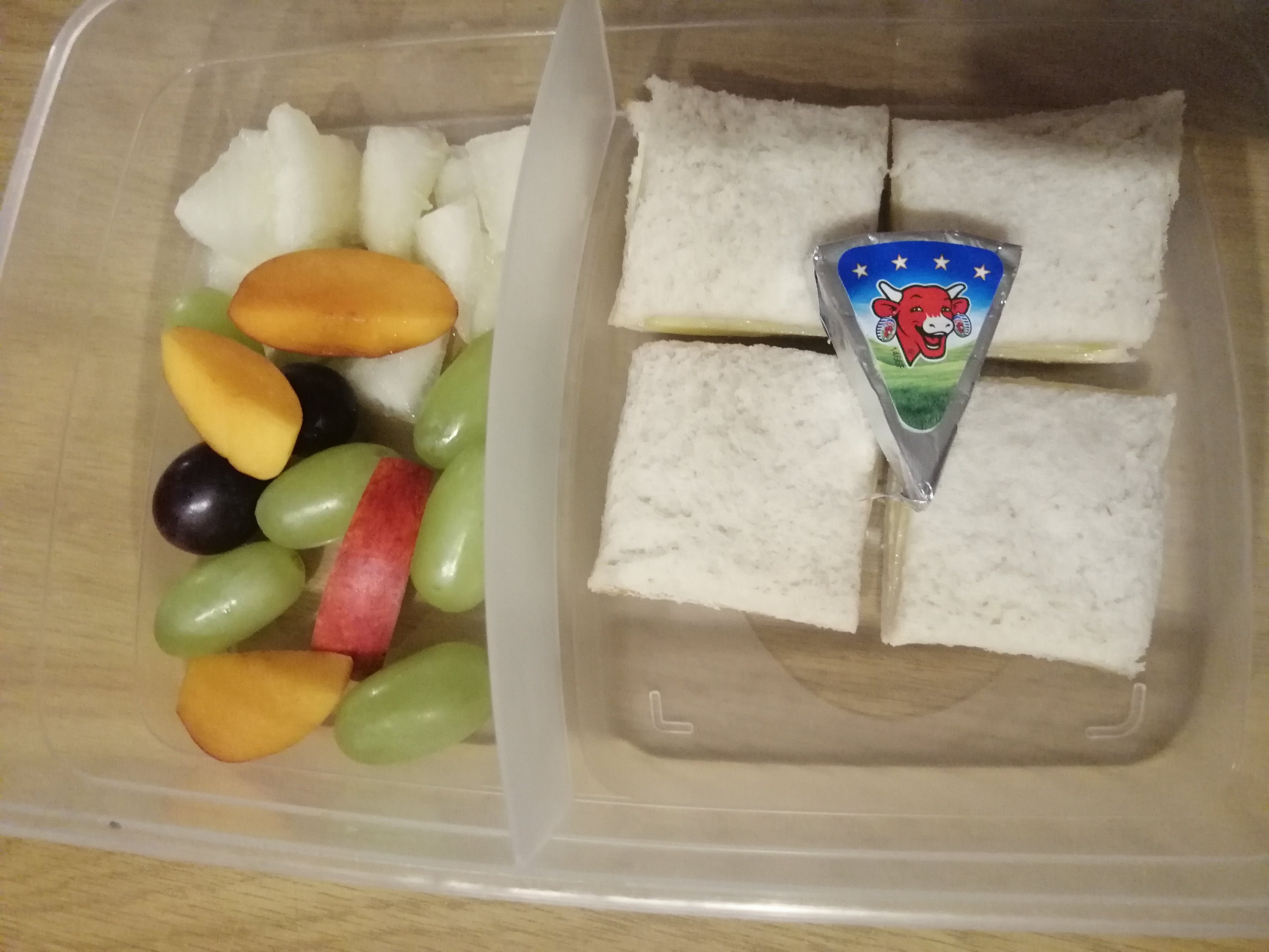 She goes to a Montessori school which believes in healthy lunches. No juice, sweet stuff, messy yoghurt etc. Everyday is adventure making her lunches, especially the summer weather bringing delicious fruit to our stores. I like to do two fruits, something with carbs, and a few extras if she’s super hungry.